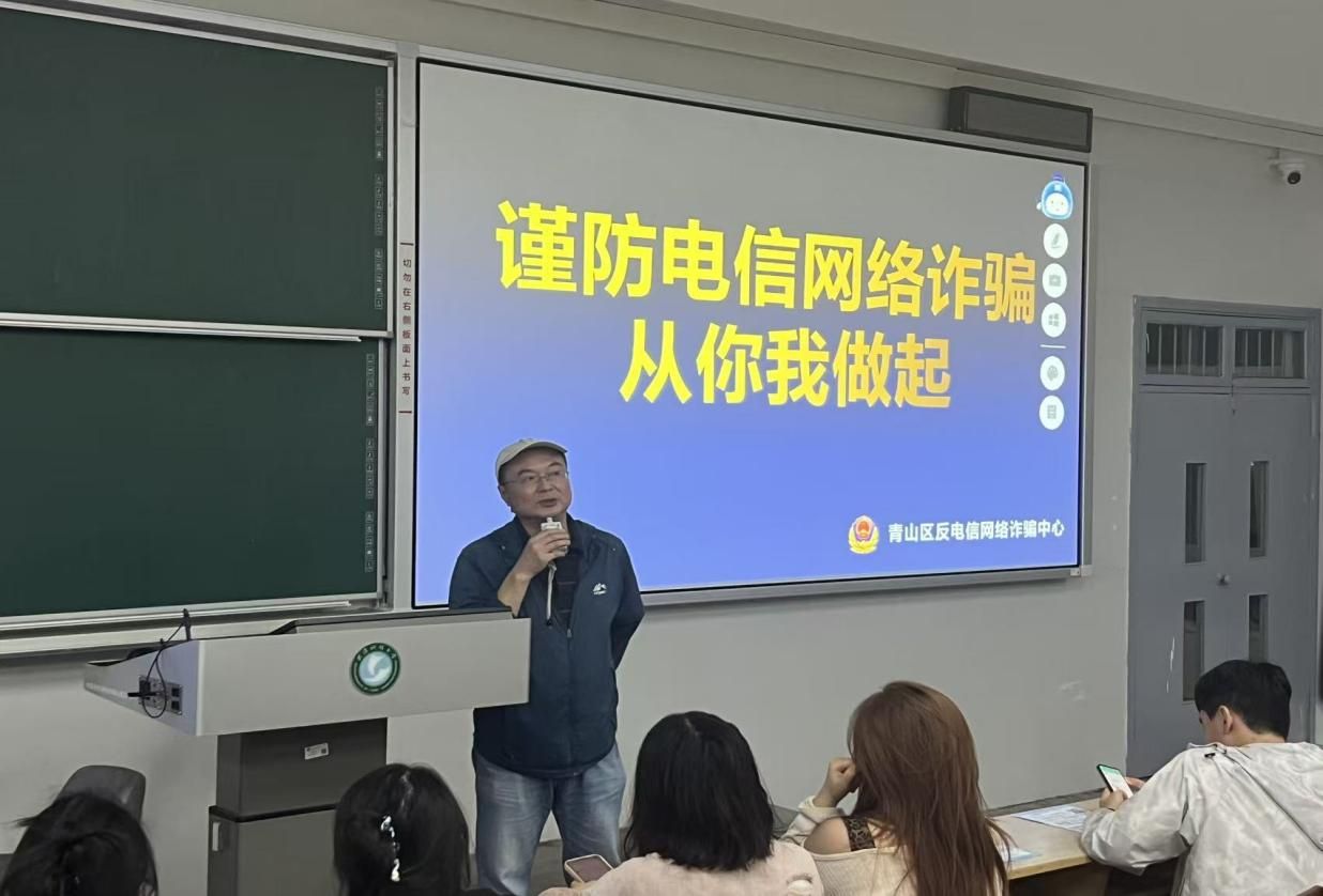 本网讯(通讯员蒋开胜 杨雍慧)为切实增强在校师生的防范电信网络诈骗意识,提升自我保护能力,营造安全、和谐、无诈的校园环境,9月23日,学校yl88858cc联合武汉市公安局青山分局政保大队、反诈中心在青山校区主楼0102教室举办“全民反诈 · 关乎你我”专题讲座。本次活动特邀青山分局反诈中心负责人黄道员警官担任主讲,通过真实案例剖析与防范技巧讲解,为广大师生带来了一堂生动而深刻的反诈教育课。学校材料学部、机械工程学院、冶金与能源学院、电子信息学院、资源与环境工程学院、化学与化工学院,人工智能与自动化学院各级学生代表共计220余人参加本次讲座。