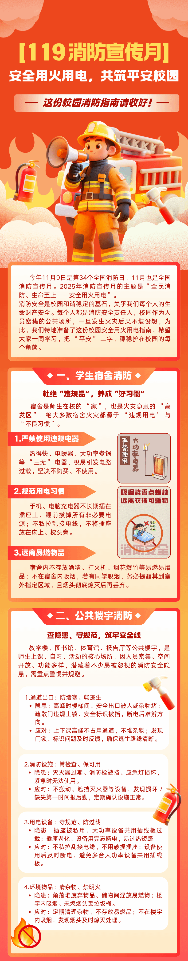 【119 消防宣传月】安全用火用电,共筑平安校园 —— 这份校园消防指南请收好!
